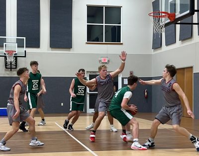 Any coach will tell you that the first three minutes of the third quarter are crucial. They can either build momentum or start the collapse. On this night, the Cagers built momentum. Defensively the Cagers were good—really good—but it was on offense that the Cagers set the tone. Sines, the hard-charging junior point guard would continue his stellar play by scoring a hoop to start things off. Then it was Preston Demiter who got things going in a hurry. First, he received a pass on the right wing and buried a 3-pointer. Shortly after, he was the recipient of a Jay Hanzie pass on a pick and roll and cashed in for two more. If that wasn’t enough, Demiter went to work in the post with a nifty pump fake and finish. “Preston played a great game. He let the game come to him and he finished,” said Hamsher. Hanzie would add 4 of his own, and by the time the horn sounded at the end of the third the Cagers held a 44-30 lead.